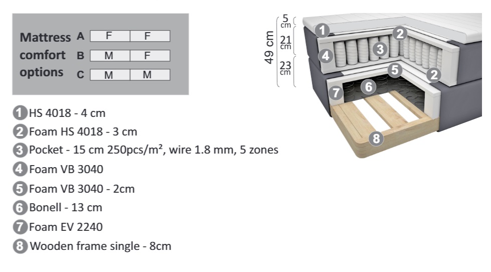 · 5-tsoonilise pocket vedrustusega madrats (21cm). Keskmine jäikus