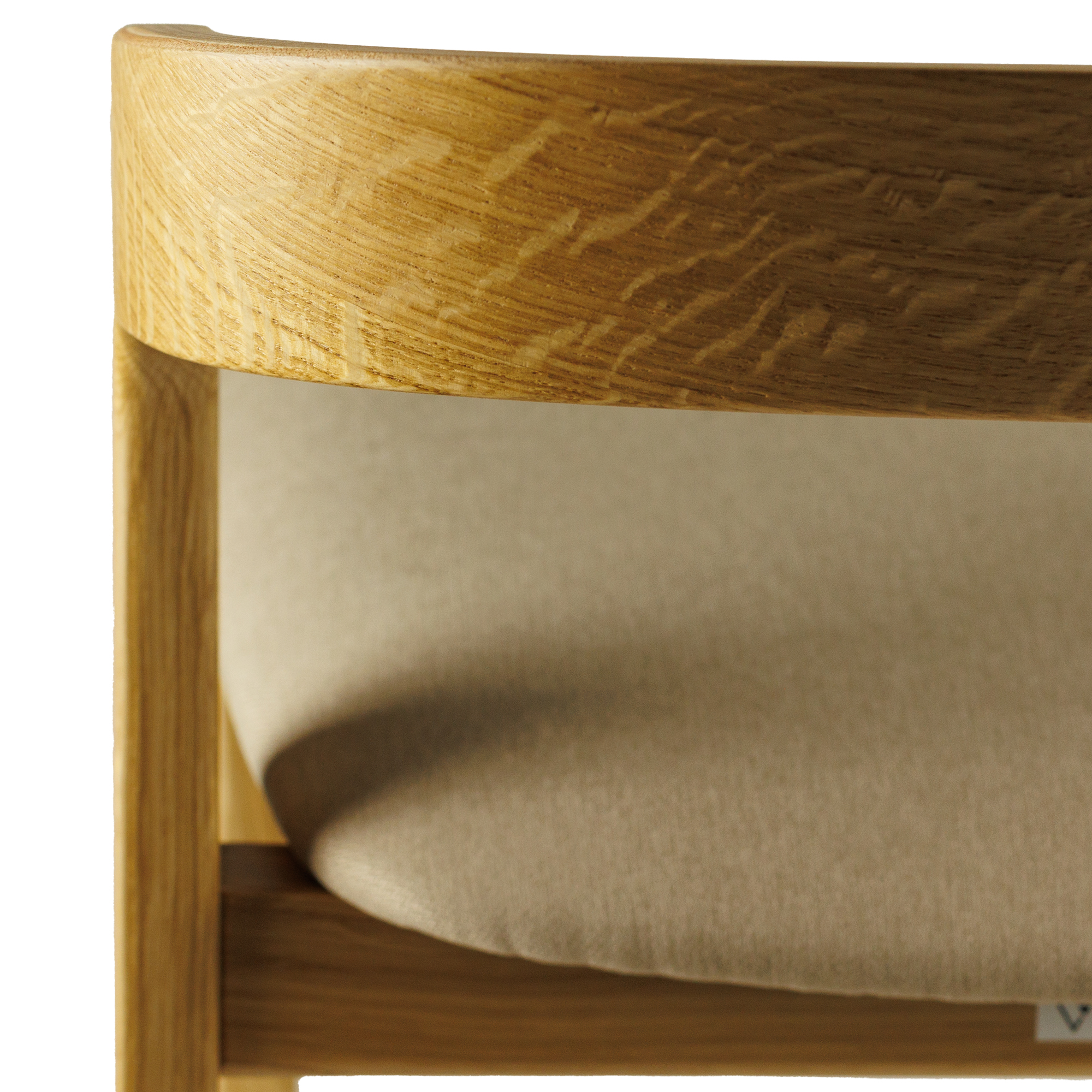Tooli seljatugi on valmistatud painutatud vineerist, kaetud tammespooniga. See mitte ainult ei suurenda konstruktsiooni tugevust, vaid lisab ka disainile elegantsi ja harmooniat. Tooli seljatoe kumer kuju toetab selja õiget asendit, tagades optimaalse mugavuse pikkadeks istumisperioodideks.