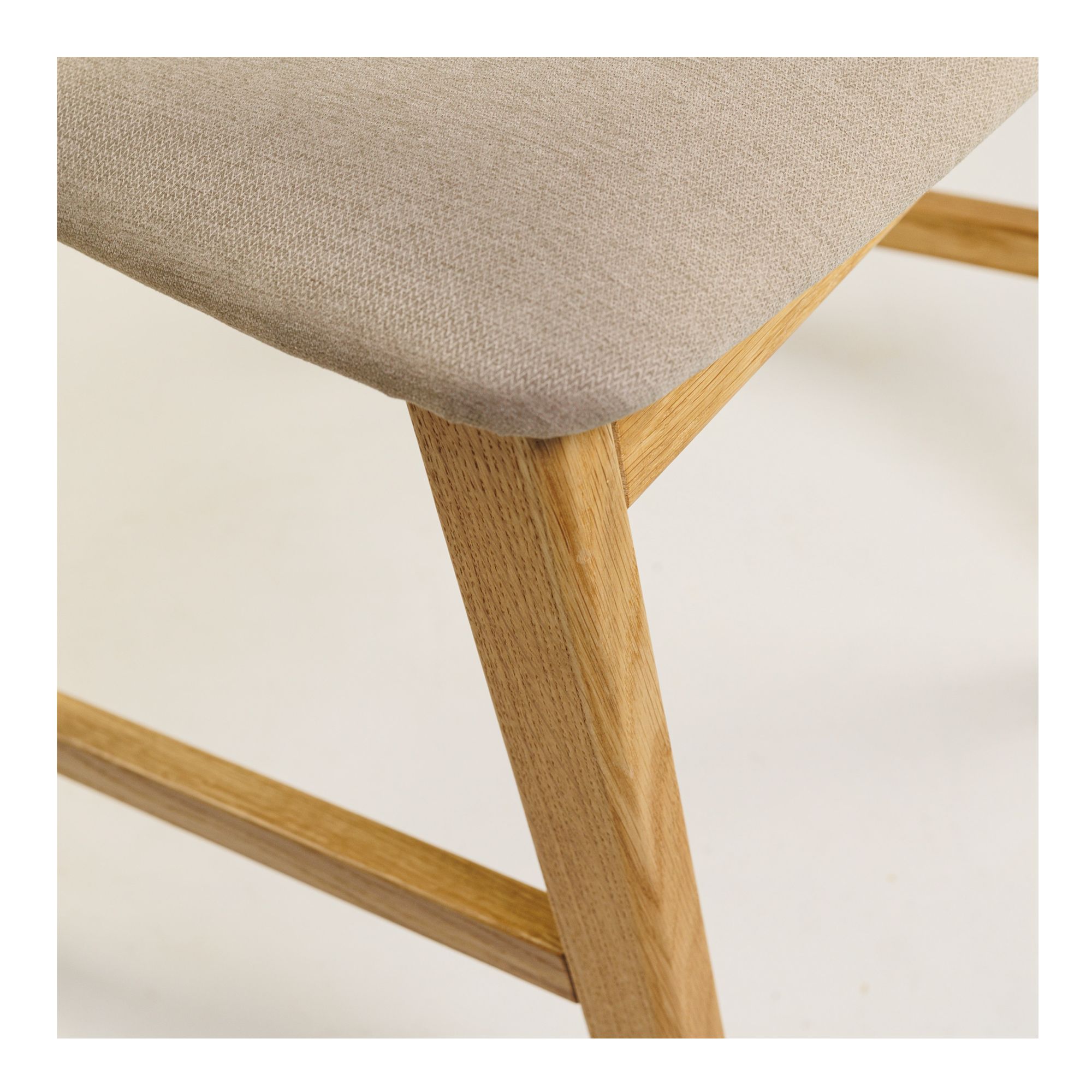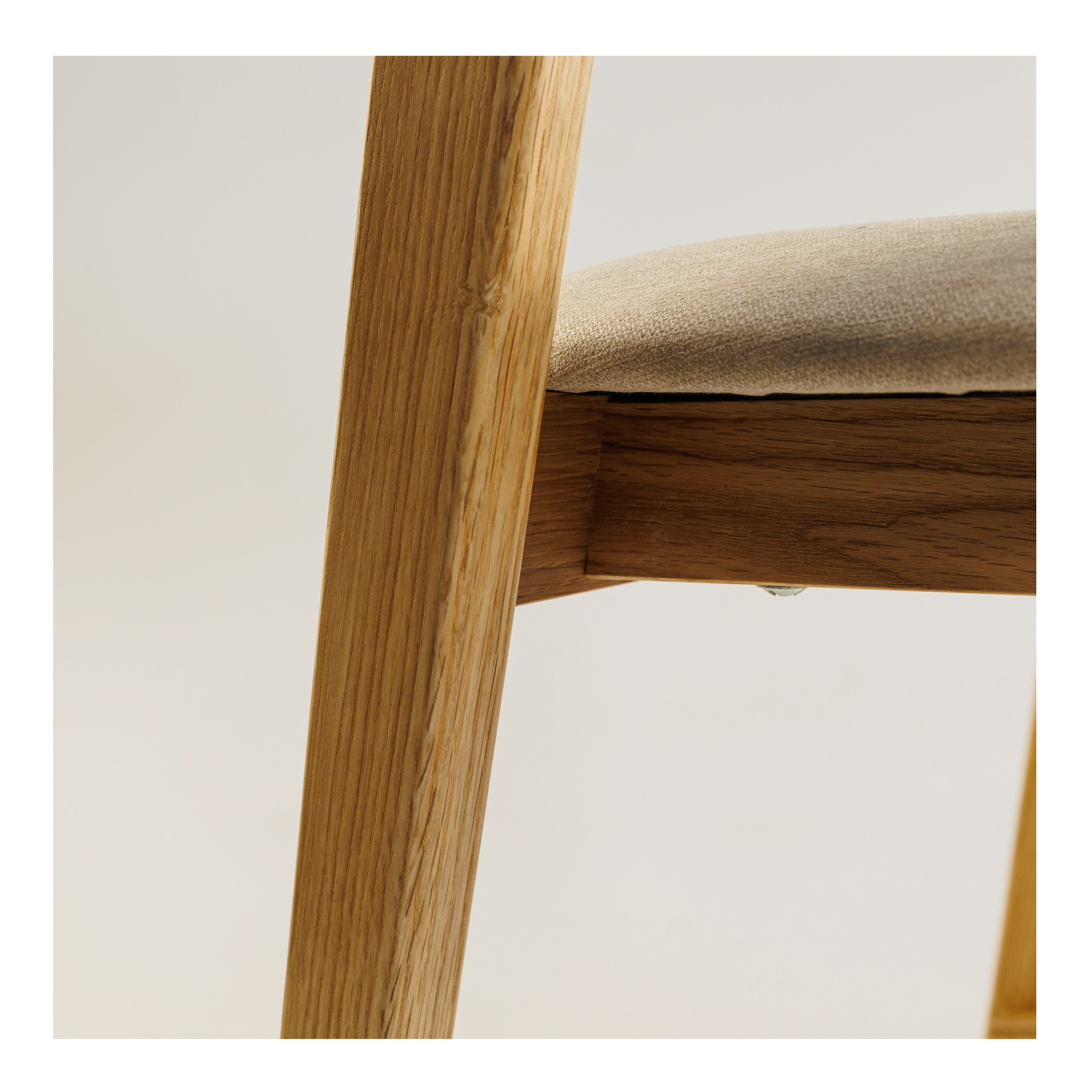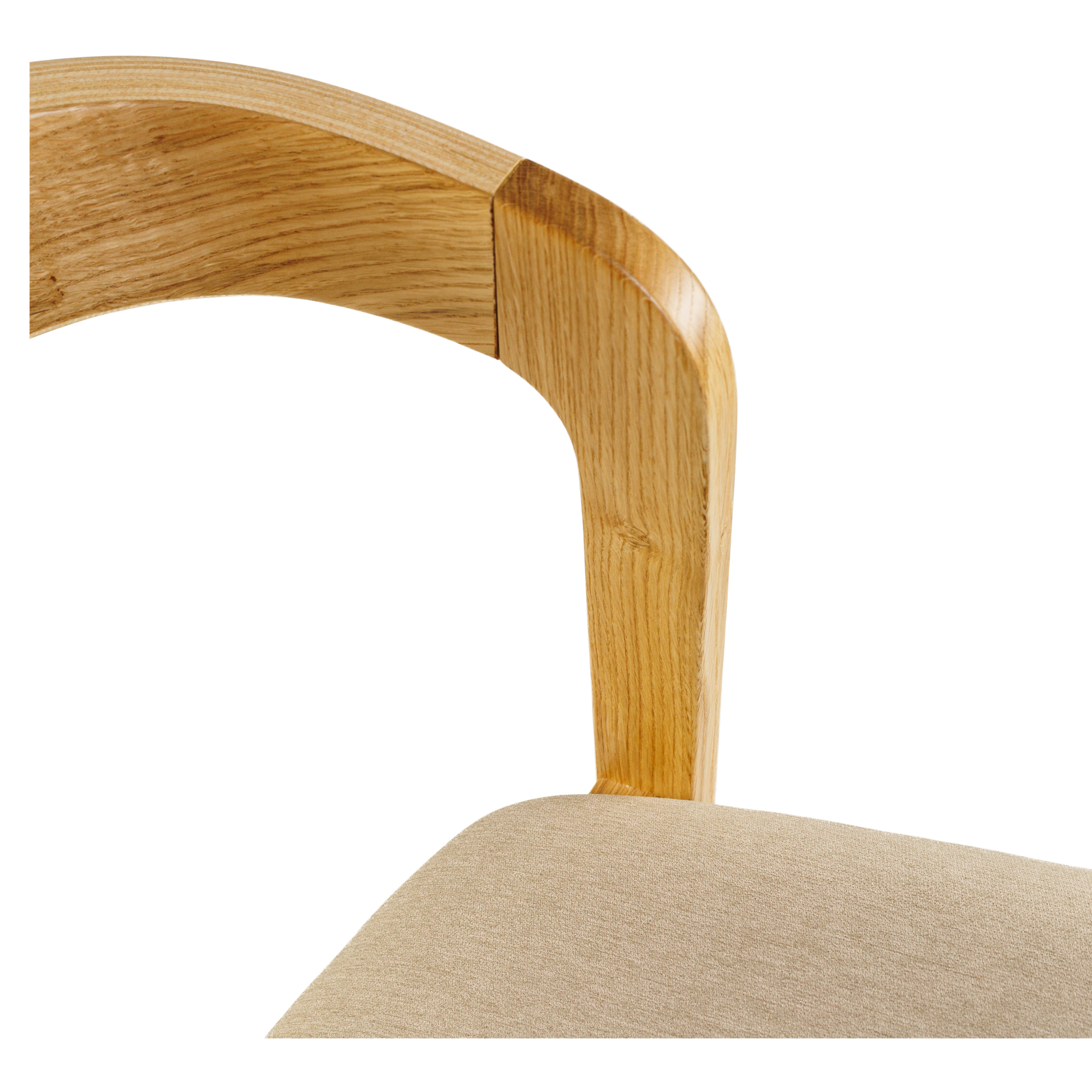 Tooli seljatugi on valmistatud painutatud vineerist, kaetud tammespooniga. See mitte ainult ei suurenda konstruktsiooni tugevust, vaid lisab ka disainile elegantsi ja harmooniat. Tooli seljatoe kumer kuju toetab selja õiget asendit, tagades optimaalse mugavuse pikkadeks istumisperioodideks.