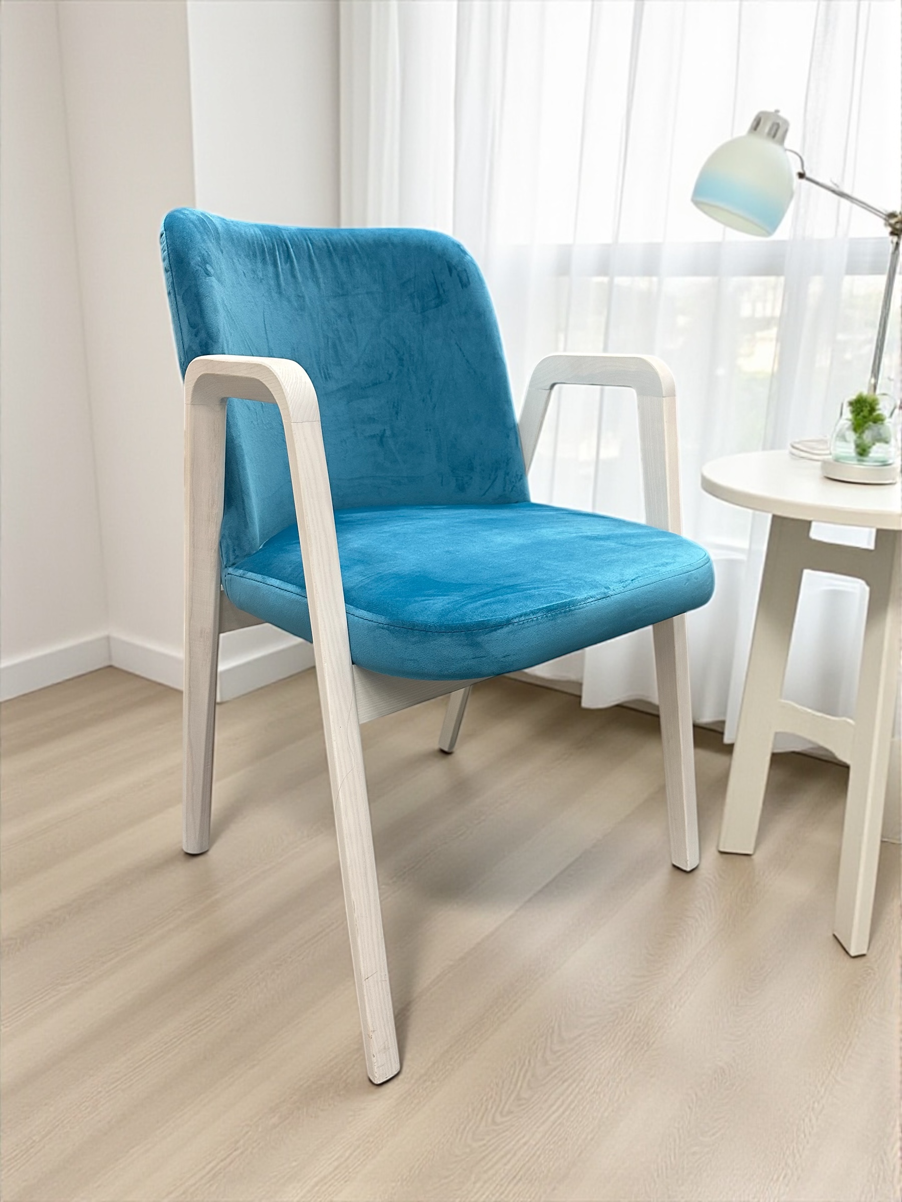 Stiilne täistammepuidust tool pehme istme ja seljatoega.