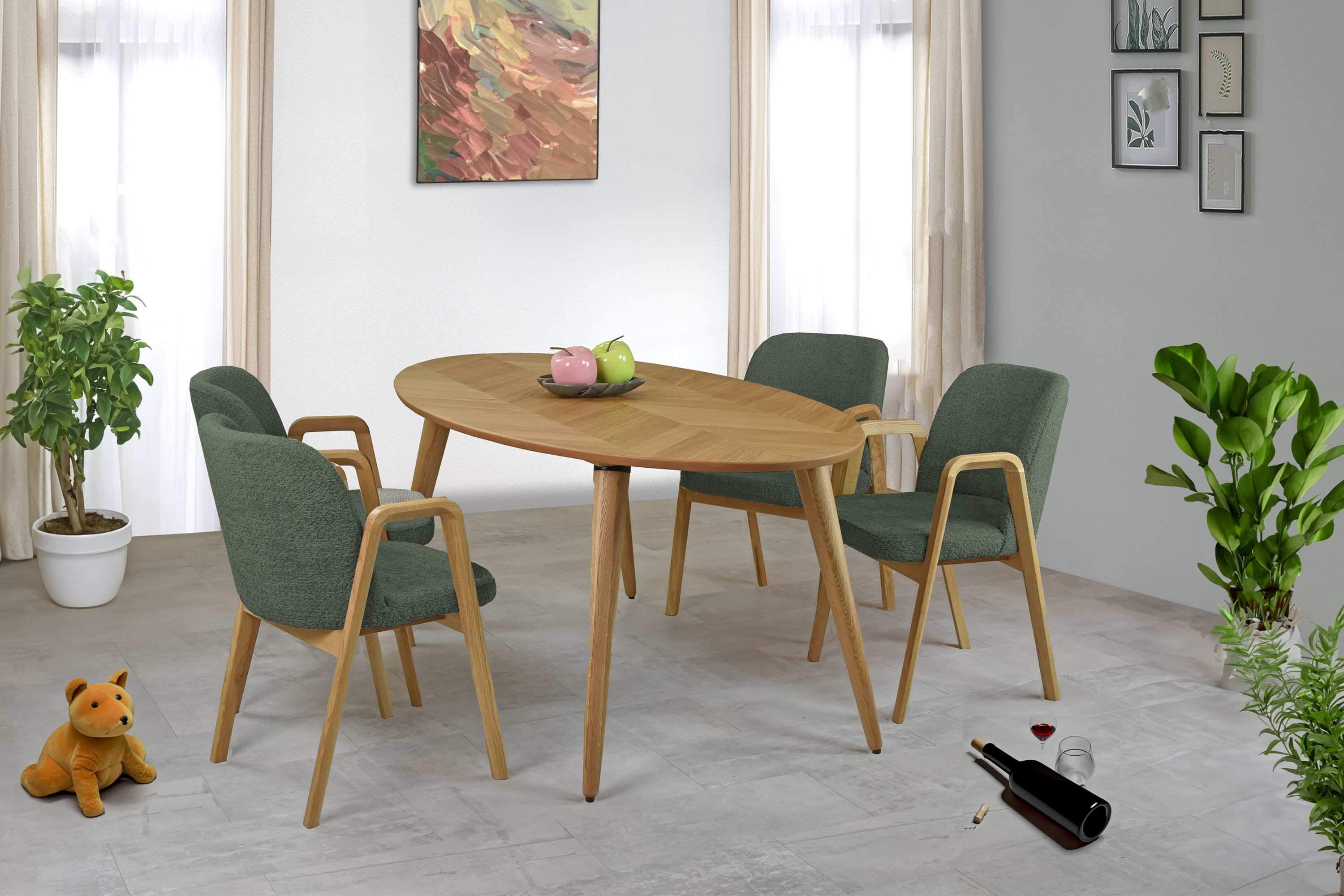 Stiilne täistammepuidust tool pehme istme ja seljatoega.